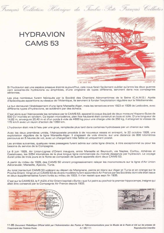 | Description | Hydravion CAMS 53. Construit par les Chantiers Aéro Maritimes de la Seine de Sartrouville (Yvelines) |