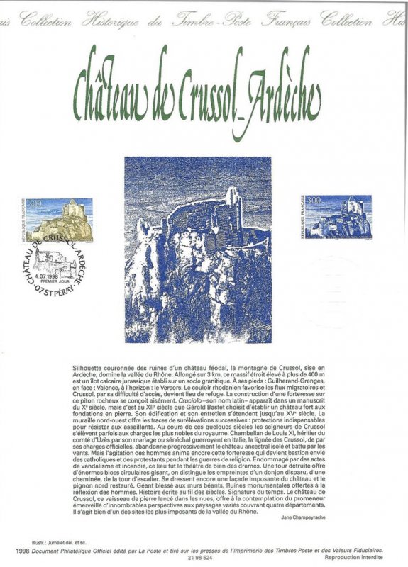 | Description | Le Château de Crussol (Ardèche) édifié au XIIe siècle au sommet d'une colline et au bord d'une falaise de plus de 200 mètres de haut |