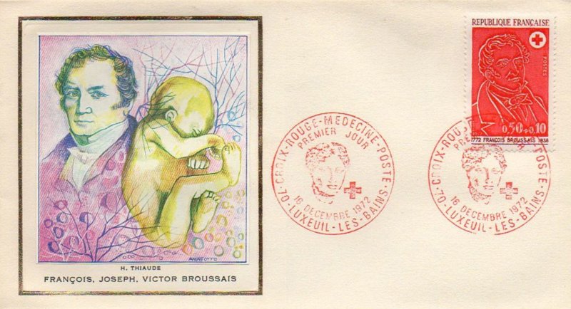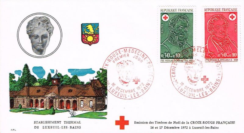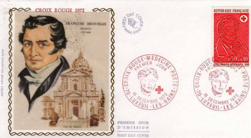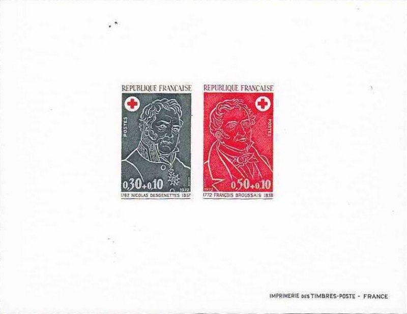 Les timbres de la série « Croix-Rouge » 1972 sont à l'effigie de deux illustres médecins du début du XIX· siècle: Desgenettes (1762-1837) et Broussais (1772-1838).