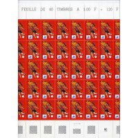 | Commentaire | Ce timbre a été repris avec le même millésime dans le BKAUTRE-1998-1. Il se distingue de celui imprimé sur le Bkautre par la longueur des noms du dessinateur et de l'imprimeur : - timbres de feuilles les noms sont longs : Briat 2,2 mm, ITVF 1,7 mm. - timbres du bloc les noms sont courts : Briat 2 mm, ITVF 1,5 mm. De plus l'espacement entre le E final de Française et le L de la poste est également différent : - Timbres de feuille : 0,9 mm - Timbres du bloc : 1,0 mm. |