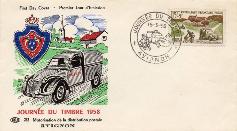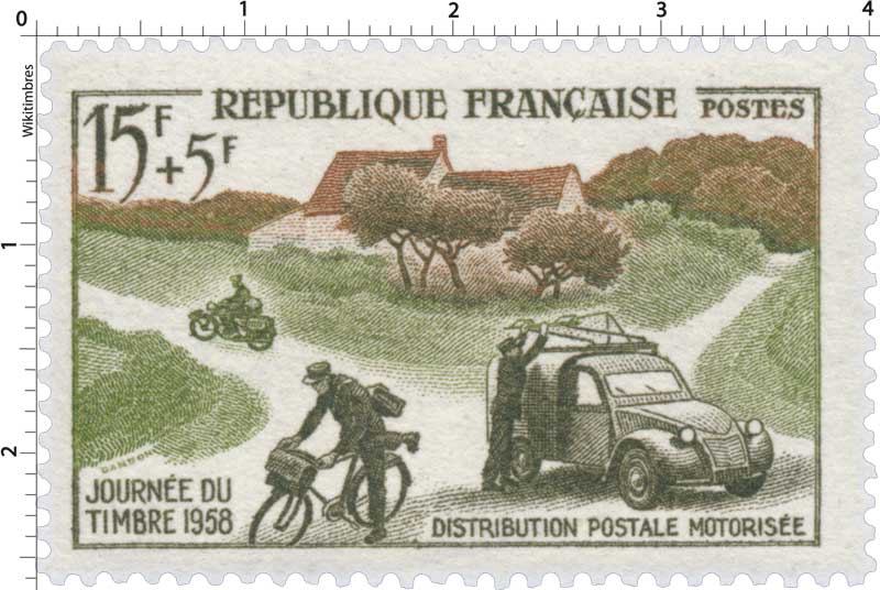 | Description | Journée du timbre 1958. Mécanisation de la distribution rurale |