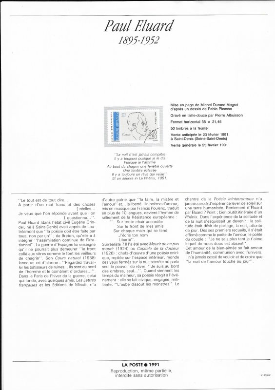 | Description | Paul Éluard (1895-1952), poète, né à Saint-Denis, portrait de Picasso |