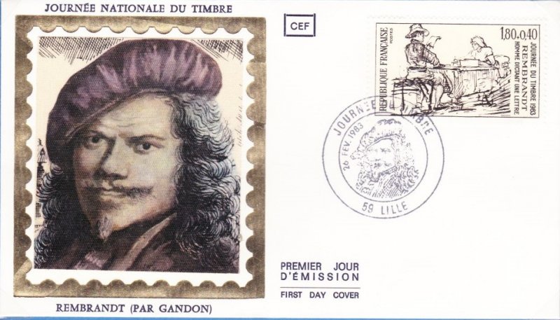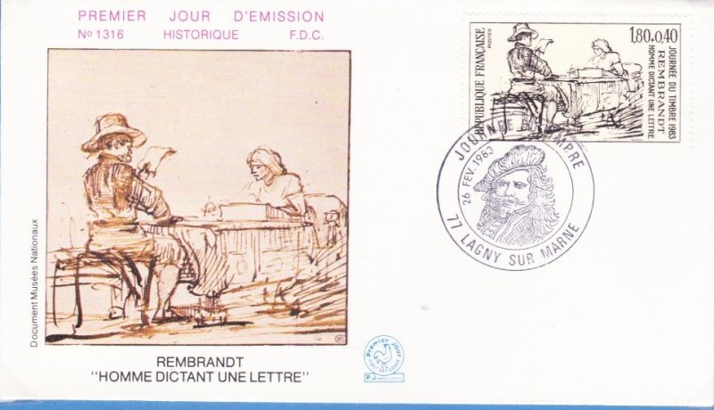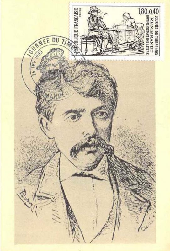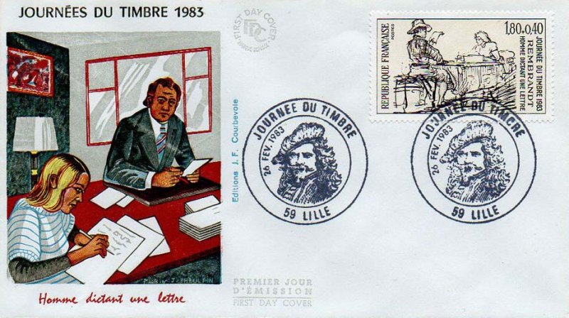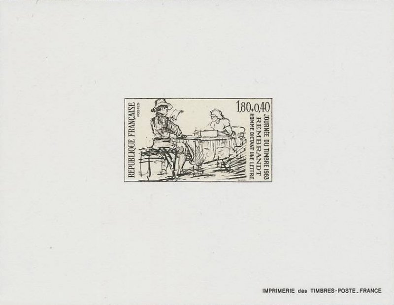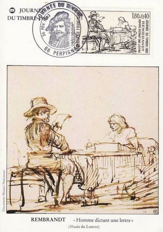 | Description | Journée du timbre 1983. Homme dictant une lettre, dessin de Rembrandt |