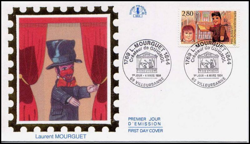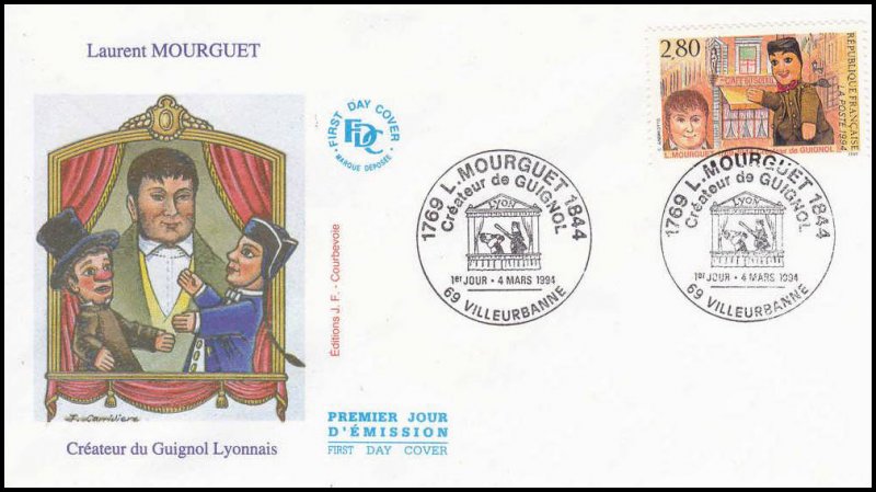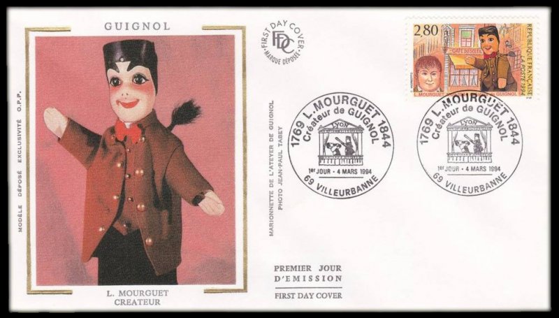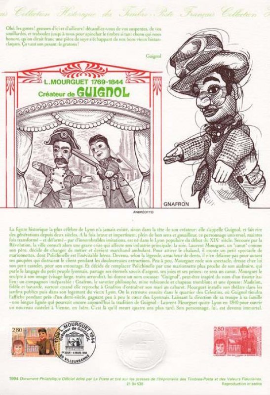 | Description | 150e anniversaire de la mort de Laurent Mourguet (1769-1844), marionnettiste et créateur de Guignol, né à Lyon |