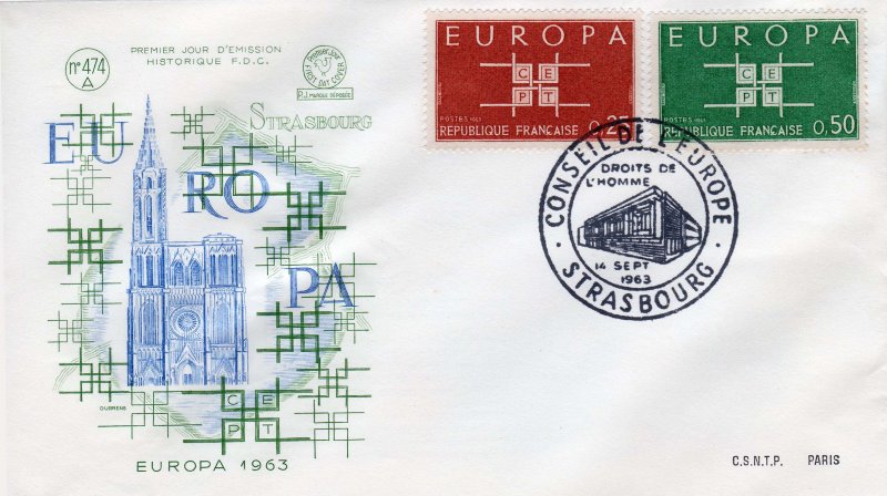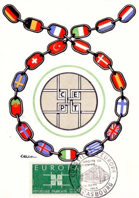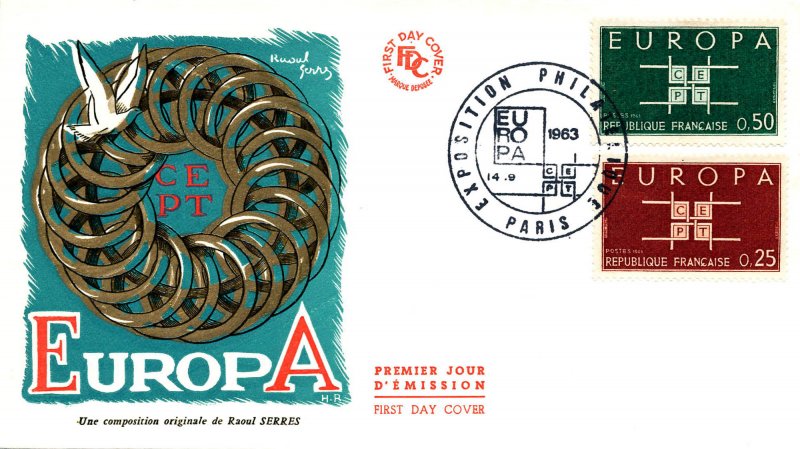| Commentaire | En septembre 1963, la France célèbre à sa manière la construction européenne en émettant deux timbres-poste « EUROPA », véritables symboles d’unité et de coopération entre les nations. Depuis 1956, l'émission annuelle de ces timbres témoigne d’une volonté claire : illustrer l’amitié et le rapprochement entre les pays du vieux continent. À partir de 1960, cette initiative est placée sous l'égide de la Conférence Européenne des Administrations des Postes et Télécommunications (CEPT), ce qui lui donne une dimension institutionnelle encore plus marquée. Pour l’édition 1963, le visuel est confié à Arne Holm, artiste norvégien, qui imagine un motif épuré : quatre lignes s'entrelacent pour former quatre carrés, chacun portant une lettre du sigle CEPT. Cette simplicité graphique, derrière son apparente modestie, traduit en réalité l’idée puissante d'interconnexion et de solidarité. Gravés en taille-douce par Pierre Gandon et imprimés en deux couleurs — bistre brun pour la valeur de 0,25 franc et vert pour celle de 0,50 franc —, ces timbres révèlent à la fois rigueur et élégance. Fait marquant : douze pays européens, parmi lesquels l'Allemagne de l’Ouest, la Belgique ou encore l'Italie, s’engagent cette année-là à reprendre exactement le même sujet pour leurs propres émissions. Cette démarche inédite donne naissance à une véritable collection commune, reflet palpable d'une Europe qui, peu à peu, cherche à s'affirmer sur la scène mondiale. Seules l’Espagne et le Portugal optent pour des créations différentes, illustrant ainsi leur position encore singulière à cette époque. Au-delà de leur vocation postale, ces timbres traduisent une aspiration collective : celle d’un avenir européen bâti sur l’échange et la fraternité. Un idéal qui, soixante ans plus tard, continue de résonner dans les esprits. WikiTimbres |