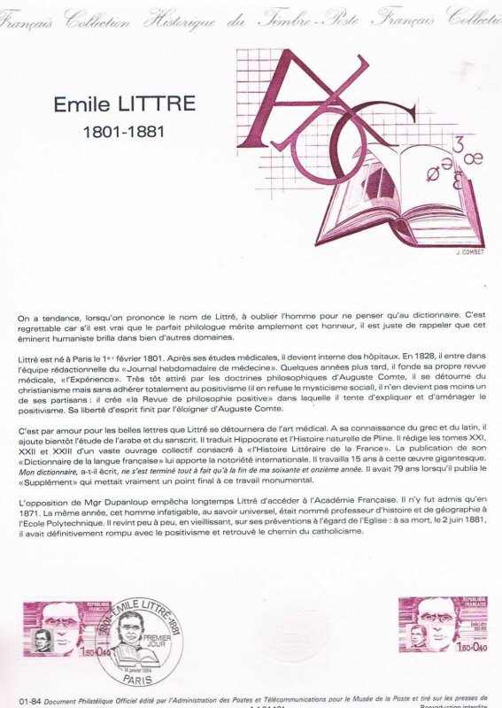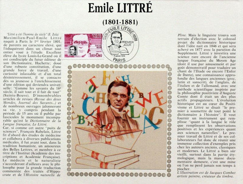 | Description | Émile Littré (1801-1881), lexicographe et philosophe, né à Paris, connu pour son dictionnaire, communément appelé Le Littré |