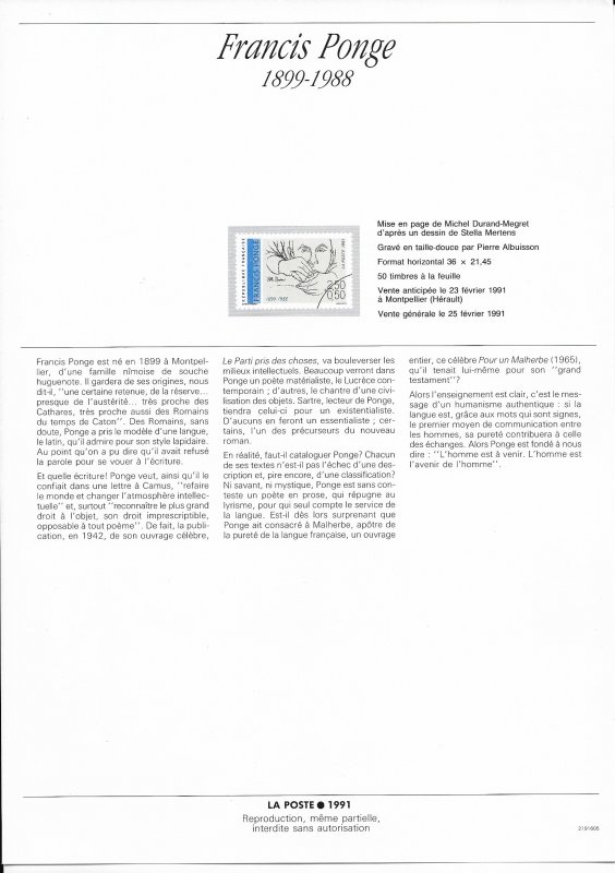 | Description | Francis Ponge (1899-1988), poète, né à Montpellier, portrait de Stella Mertens |