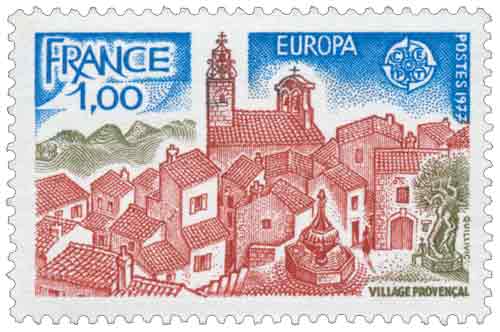 | Commentaire | Dans le cadre de l’émission EUROPA 1977, consacrée aux paysages, ce timbre s’inscrit dans une démarche collective menée par les administrations postales européennes pour proposer une vision harmonisée du patrimoine naturel et culturel du continent, tout en laissant à chaque pays la liberté d’interprétation de son identité. La France a choisi de représenter des sites emblématiques de Bretagne et de Provence, traduits ici par une composition synthétique qui rassemble des éléments architecturaux, géographiques et humains immédiatement reconnaissables. Ce timbre évoque le village provençal à travers l’enchevêtrement des maisons aux façades claires, les ruelles étroites et les escaliers, disposés comme un ensemble organique accroché à la pente, tandis que l’église et son beffroi de fer forgé rappellent l’adaptation de l’architecture aux contraintes climatiques, notamment au mistral. L’arrière-plan suggère un paysage façonné par la vigne et l’agriculture méditerranéenne, soulignant l’importance de ces activités dans l’économie et le mode de vie régionaux à la fin des années 1970. Par son traitement en taille-douce, ce timbre privilégie une lecture sensible et structurée du paysage, où la lumière et les volumes jouent un rôle essentiel, sans recours à l’anecdote. Il témoigne de la volonté de la Poste française de participer activement au programme EUROPA, non seulement comme opération philatélique à dimension européenne, mais aussi comme outil de valorisation culturelle, montrant comment le timbre peut devenir un support de représentation symbolique des territoires. À travers cette évocation du village provençal, ce timbre illustre ainsi l’attachement à un cadre de vie traditionnel, perçu comme un élément constitutif de l’identité française au sein de l’Europe. Article rédigé pour WikiTimbres |