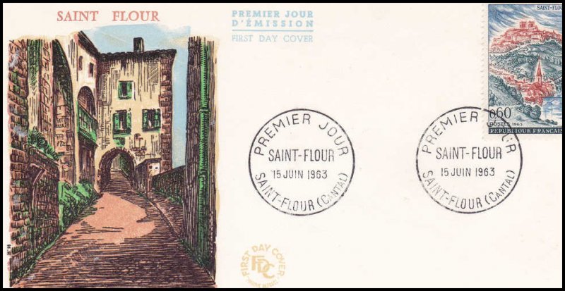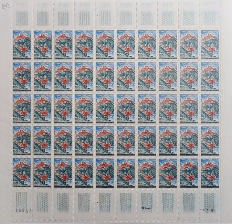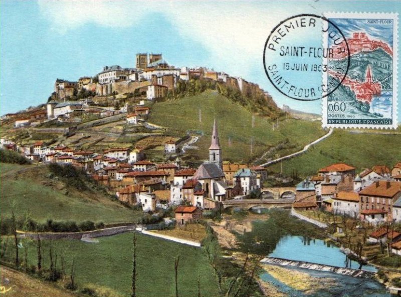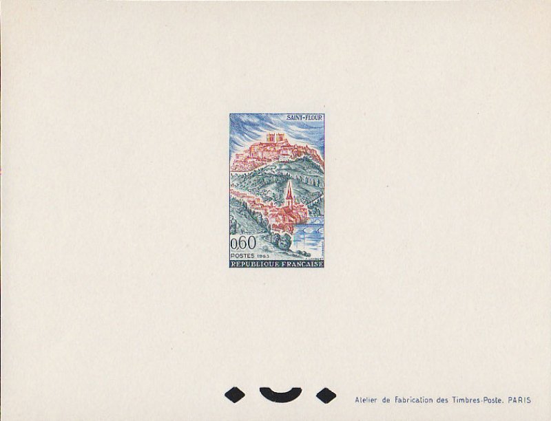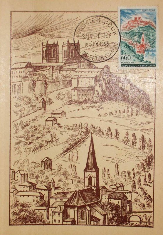 | Commentaire | Le timbre « Saint-Flour », émis en juin 1963, fait partie de cette série dite « touristique » qui illustre les paysages et les villes de France avec une élégance tranquille. Le regard est ici happé par la ville haute de Saint-Flour, juchée sur son éperon volcanique, dominant la vallée avec ses toits massés et son célèbre clocher gothique. La composition, toute en verticalité, accentue l’impression de forteresse perchée, coupée du monde moderne. Ce timbre, conçu par Pierrette Lambert et gravé par Claude Durrens, allie deux talents complémentaires. Lambert donne à la scène une structure claire et lisible, presque géométrique, tandis que Durrens en traduit la matière, les volumes, les textures — cette rugosité du bâti médiéval, cette masse protectrice. Les teintes sobres — un camaïeu de rouges et de verts bruns — évoquent les couleurs profondes du Cantal, région d’Auvergne dont Saint-Flour est une figure majeure. Ville d’histoire et de foi, Saint-Flour fut siège épiscopal dès le Moyen Âge, et l’un des rares exemples d’urbanisme organisé autour d’un plateau basaltique. En choisissant ce sujet, La Poste fait le pari d’un patrimoine moins connu mais profondément ancré dans le territoire. En 1963, la valorisation des régions s’inscrit dans une stratégie culturelle et touristique nationale, portée par le développement des congés payés et du tourisme intérieur. Tiré à près de 48 millions d’exemplaires, ce timbre a largement circulé, notamment à l’étranger. Il reste prisé par les collectionneurs attachés aux séries régionales, mais aussi par les amoureux d’architecture et de paysages authentiques. Un timbre qui respire la France des terres hautes et silencieuses. ©WikiTimbres |