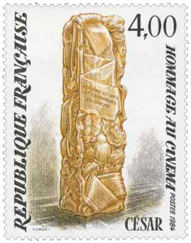 | Commentaire | Ce timbre rend hommage à César Baldaccini, sculpteur français majeur du XXᵉ siècle, en mettant en avant l’une de ses créations les plus emblématiques, devenue un symbole culturel largement identifié par le public. En 1984, la décision d’émettre ce timbre s’inscrit dans une politique postale attentive aux grandes figures de l’art contemporain français et à leur rayonnement au-delà des cercles spécialisés. César, associé au mouvement des Nouveaux Réalistes dès 1960, s’est illustré par une approche radicale de la sculpture, utilisant des matériaux industriels et des procédés inédits pour interroger la société de consommation, la transformation de la matière et le rapport de l’objet à l’œuvre d’art. Ce timbre renvoie plus précisément à son lien avec le cinéma, à travers le trophée qu’il a conçu au milieu des années 1970 et qui porte son nom, récompense devenue centrale dans la reconnaissance du cinéma français. Au moment de l’émission, cette distinction est déjà solidement installée dans le paysage culturel, ce qui confère à ce timbre une portée symbolique dépassant la seule célébration d’un artiste. Il témoigne de la manière dont une œuvre sculpturale peut accéder à un statut d’icône nationale, associée à un art populaire et médiatisé, tout en restant ancrée dans une démarche artistique exigeante. Ce timbre illustre ainsi la rencontre entre création contemporaine, reconnaissance institutionnelle et mémoire collective, et reflète la volonté de l’administration postale française de valoriser des réalisations artistiques qui ont marqué durablement la vie culturelle du pays au tournant des années 1980. Article rédigé pour WikiTimbres |
