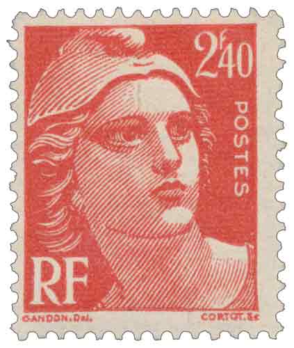 | Commentaire | Le timbre gommé de 1945 « Marianne de Gandon » à 2,40 francs rouge appartient à la série définitive mise en place après la Libération pour doter la France d’une iconographie républicaine stable et pérenne, destinée à remplacer les émissions transitoires de l’immédiat après-guerre. Mis en vente le 2 juillet 1945, il correspond aux tarifs postaux en vigueur à cette date et s’inscrit dans la continuité de la série conçue par Pierre Gandon, dont la représentation sobre et classique de Marianne incarne le retour à l’ordre institutionnel et aux valeurs républicaines. Gravé par Henri Cortot et imprimé en typographie rotative, ce timbre illustre le rétablissement de procédés d’impression industriels adaptés à des usages courants, tout en répondant à des besoins tarifaires spécifiques sur une période relativement courte, comme en témoigne son retrait dès juin 1946. Par son tirage plus limité que certaines valeurs de la série, il occupe une place particulière dans l’ensemble des émissions Marianne de l’année 1945. |