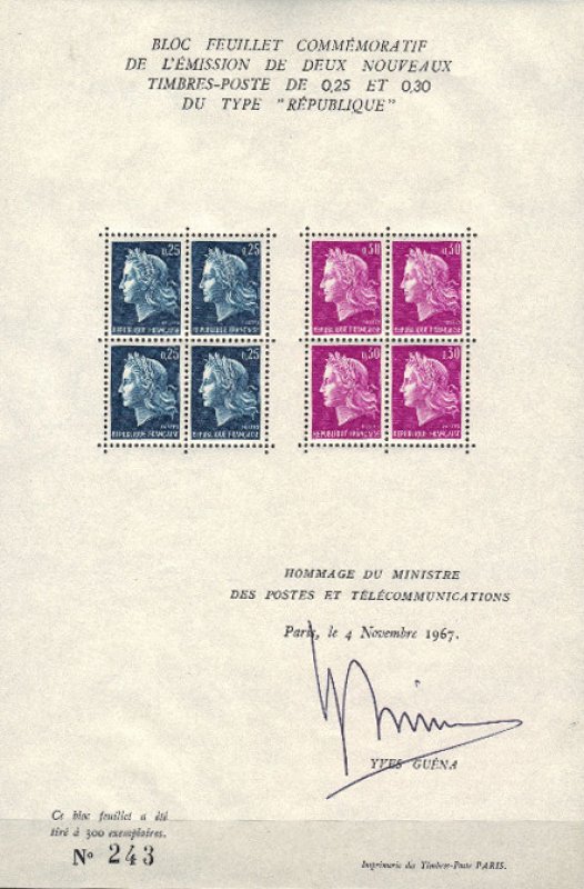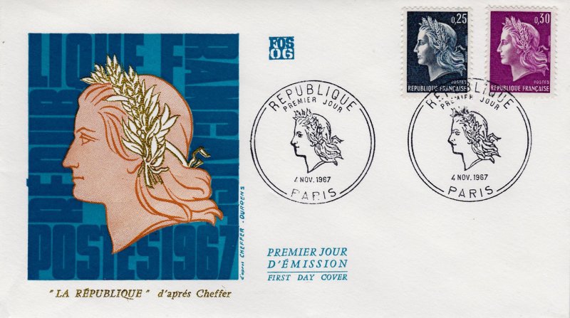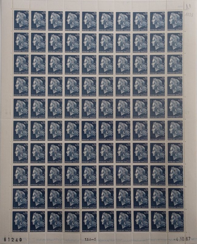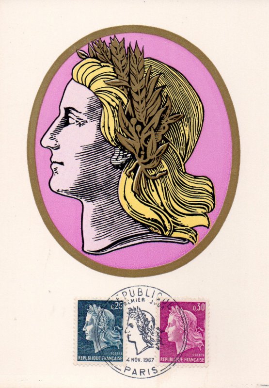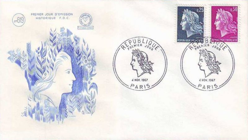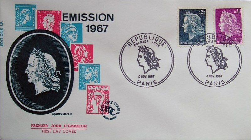 | Commentaire | Existe également en émission roulette, numérotation rouge au dos Tu t’es déjà demandé à quoi ressemblait la République, façon papier ? Eh bien depuis 1849, on l’a dessinée sous toutes ses coutures — tantôt semeuse, tantôt moissonneuse, parfois muse poétique ou Marianne rebelle. Et chaque fois, c’est un bout d’âme de la France qu’on colle sur une enveloppe. La toute première, c’était Cérès, la déesse des moissons (oui, carrément une déesse pour incarner un régime). Puis sont venus les types Mouchon, Merson, la Semeuse en 1903 — une femme drapée dans l'antique qui balance des graines en marchant, idée toute simple mais puissante. Et après la guerre ? Boum, Marianne s’impose. Coiffée du bonnet phrygien (petit clin d'œil révolutionnaire), elle devient l’icône nationale qu’on décline à l’infini, version Dulac, Gandon, Cocteau même. Chacun sa vision, chacun sa touche. Cocteau, d’ailleurs, en 1961, a osé un profil de femme si épuré qu’un critique a écrit : « on dirait qu’elle souffle une idée plus qu’elle ne la dit ». Pas mal. Et en 1967, place à la nouvelle Marianne de Cheffer, une jeune femme au profil paisible, couronnée d’épis et de laurier – symboles de prospérité et de victoire. Elle a gagné le Grand Prix de l’Art Philatélique cette année-là, tu crois que c’est rien ? Détrompe-toi. C’est un peu comme si on lui avait donné un César pour meilleure actrice... du courrier. Et ça compte, surtout dans un pays où chaque visuel est un manifeste. La République, en somme, elle se lit autant sur une façade de mairie que sur un petit rectangle de papier. Et demain ? Elle changera encore de visage, c’est sûr — c’est ce qui la rend vivante. WikiTimbres |