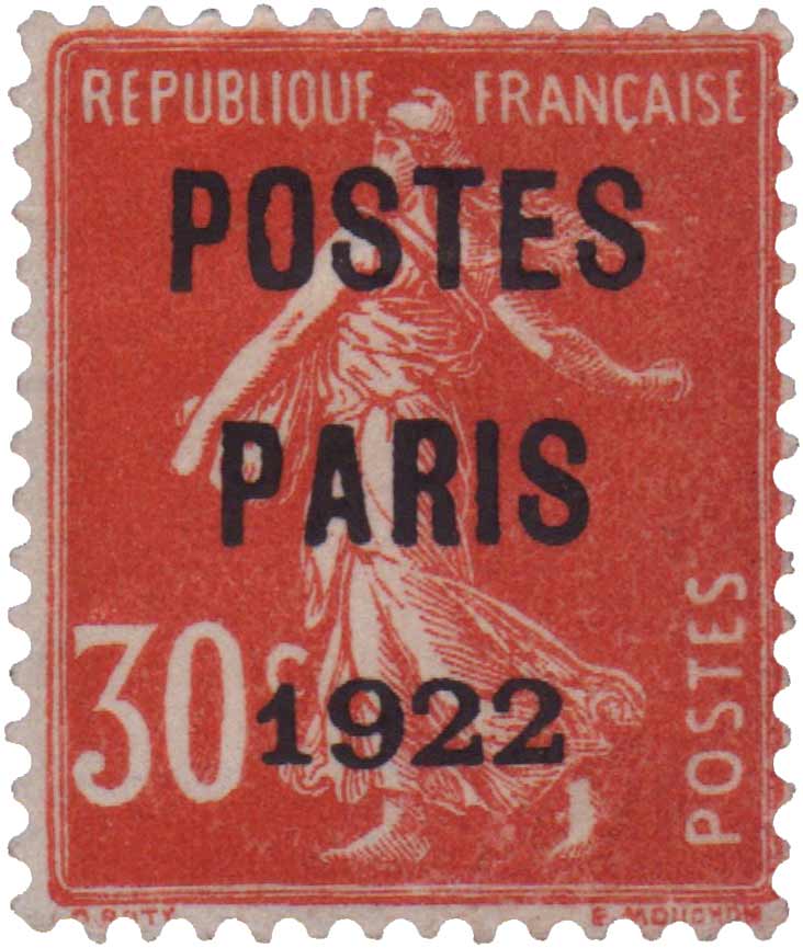 | Description | Type Semeuse surchargé POSTES PARIS 1922 |