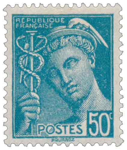 | Commentaire | Mercure - République Française Cette émission de 1942 occupe une place particulière dans l'histoire postale de la Seconde Guerre mondiale. Bien qu'émis sous le régime de Vichy, ce timbre de type Mercure est le seul de l'année 1942 à conserver la légende « République Française - POSTES ». Dessiné et gravé par Georges Hourriez, il présente le profil du messager des dieux tourné vers la gauche. D'une valeur faciale de 50 c, il était principalement destiné à l'affranchissement du premier échelon de poids des imprimés ordinaires jusqu'à 20g pour l'intérieur. Sa mise en vente générale a débuté le 7 février 1942. Imprimé en typographie rotative en feuilles de 100 unités, il a bénéficié d'un tirage très important de 125,75 millions d'exemplaires. Une anecdote technique certifiée par les spécialistes (Cercle des Amis de Marianne) précise que ce timbre utilise le poinçon original créé en 1938-1939, ce qui explique le maintien de la mention républicaine alors que les autres émissions contemporaines portaient la légende « État Français ». On le retrouve également avec une surcharge « préoblitéré » pour les envois en nombre. |