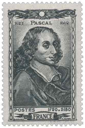 | Commentaire | Timbre gommé de France émis en 1944, ce timbre commémoratif est consacré à Blaise Pascal, figure majeure du XVIIᵉ siècle français, à la fois mathématicien, physicien, philosophe et théologien, représenté ici dans une gravure de Pierre Munier d’après un dessin de G. Edelinck. Inscrit dans les émissions de juillet 1944, il appartient à la catégorie des timbres de célébrités et s’intègre aussi bien aux séries évoquant le règne de Louis XIV qu’aux émissions dédiées aux sciences et à la pensée, tout en comportant une surtaxe au profit du Secours National, dispositif fréquent dans les dernières émissions de l’Occupation. Son usage postal correspond à l’affranchissement de la carte postale pour le régime intérieur, ce qui situe clairement sa fonction dans le contexte tarifaire de l’époque. Le choix de Pascal comme sujet renvoie à une reconnaissance institutionnelle de ses travaux scientifiques et intellectuels, notamment ses recherches sur le vide et la pression atmosphérique, ses contributions fondatrices à la géométrie projective et au calcul des probabilités, ainsi que son rôle dans l’histoire des techniques avec la pascaline, première machine à calculer opérationnelle, dont l’influence demeure attestée et consensuelle dans l’histoire des sciences. |