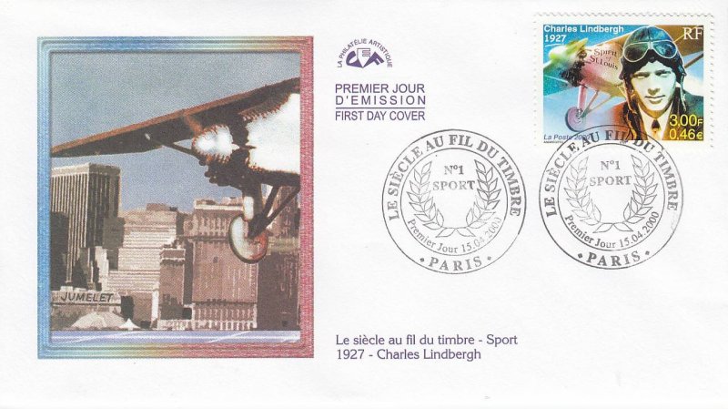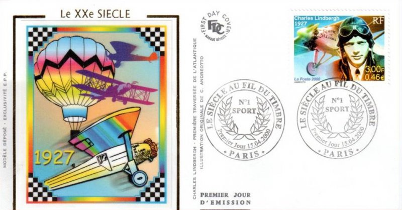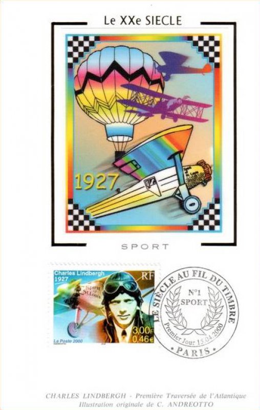 | Description | Charles Lindbergh 1927, premier pilote à relier New York à Paris entre le 20 et 21 mai 1927 en 33 heures et 30 minutes, à bord de son avion Spirit of Saint Louis |
