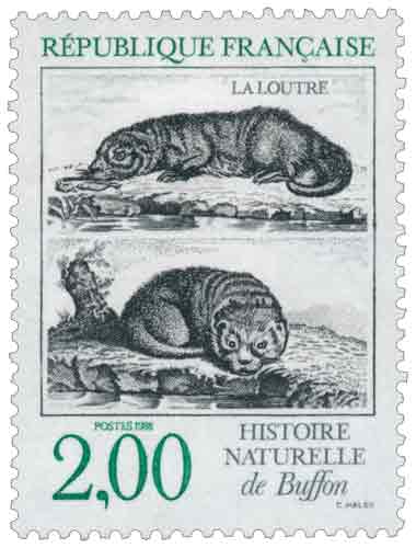 | Commentaire | Ce timbre s’inscrit dans la série consacrée à l’Histoire naturelle de Buffon, ensemble philatélique qui rend hommage à l’œuvre scientifique majeure publiée au XVIIIᵉ siècle par Georges-Louis Leclerc, comte de Buffon, et qui a profondément marqué la diffusion des connaissances naturalistes en France et en Europe. Le sujet choisi met en avant la loutre, mammifère carnivore de la famille des mustélidés, emblématique des milieux aquatiques continentaux et déjà décrite avec précision dans les volumes de Buffon, tant pour sa morphologie que pour son comportement. Ce timbre rappelle la richesse descriptive de ces travaux, qui associaient observation scientifique et volonté pédagogique, à une époque où la zoologie se constituait comme discipline autonome. La loutre y est évoquée comme un animal parfaitement adapté à la vie amphibie, vivant principalement à proximité des rivières et des étangs, dotée de remarquables capacités de nage et de plongée, et se nourrissant essentiellement de poissons et de petits animaux aquatiques. L’émission de ce timbre en 1988 s’inscrit également dans un contexte de sensibilisation croissante à la protection de la faune sauvage, alors que l’espèce avait fortement régressé dans certaines régions en raison de la chasse pour sa fourrure et de la dégradation des habitats naturels. En reprenant l’héritage iconographique et scientifique de Buffon, ce timbre établit un lien entre le patrimoine intellectuel des Lumières et les préoccupations contemporaines liées à la conservation de la biodiversité. Il occupe ainsi une place significative dans la politique commémorative postale française, qui associe régulièrement histoire des sciences, pédagogie et mise en valeur du patrimoine naturel. Article rédigé pour WikiTimbres |