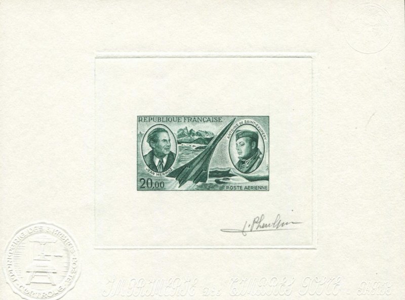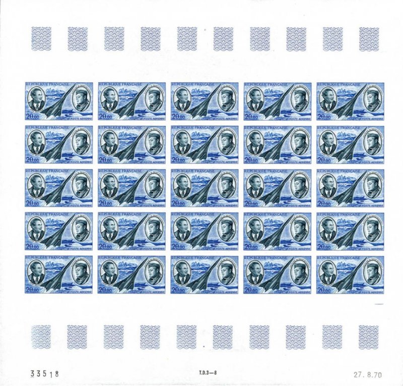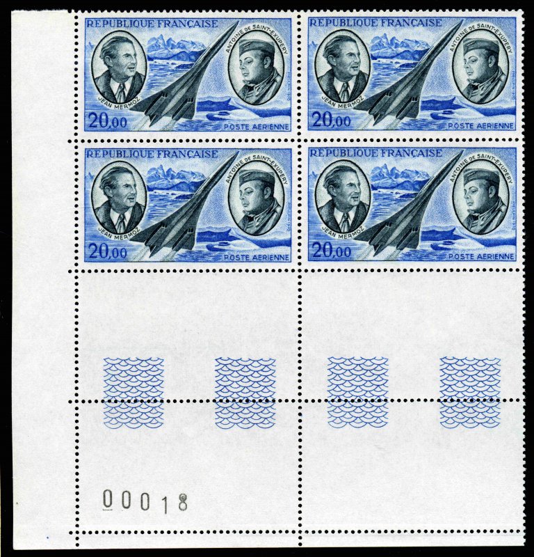 | Commentaire | Mermoz (1901-1936) et Saint-Exupéry (1900-1944). Le 1er tirage a été fait en feuille de 25 timbres, sur du papier neutre sous UV. Les tirages suivants ont été fait sur feuillet de 10 timbres avec pont entre les timbres, le papier est avec azurant optique, visible sous UV |