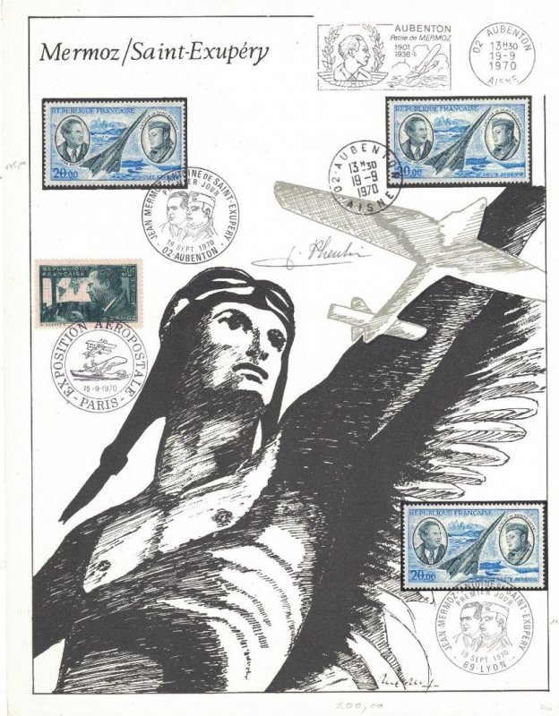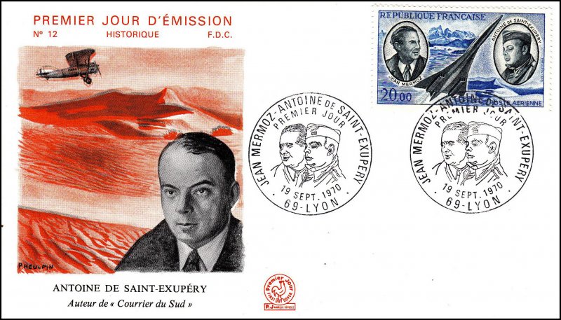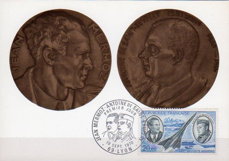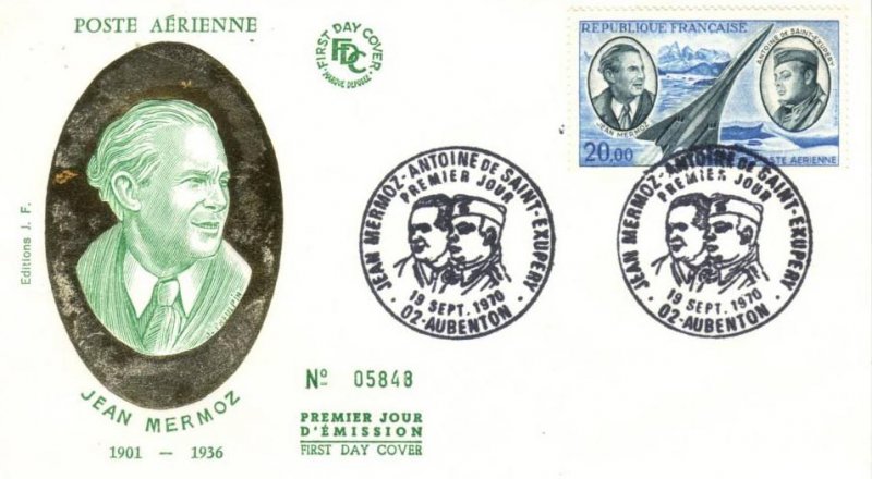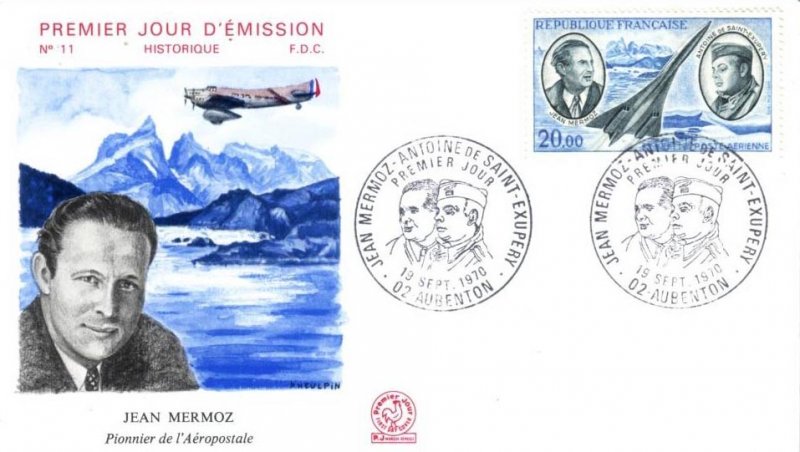 | Description | Mermoz (1901-1936), né à Aubenton, et Saint-Exupéry (1900-1944), né à Lyon. Pionniers de la Poste aérienne |