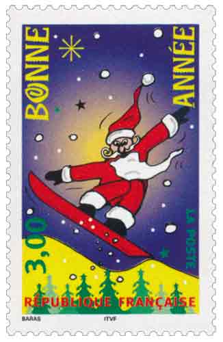 | Description | Meilleurs Vœux. Bonne année, Père Noël pratiquant le snowboard |