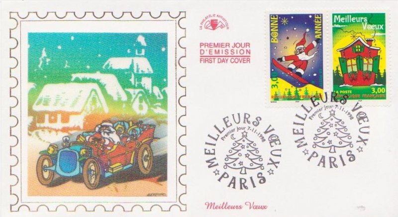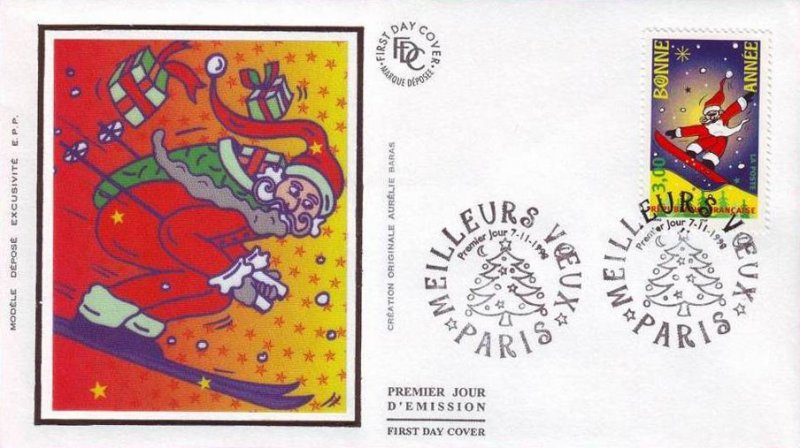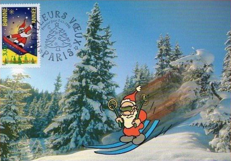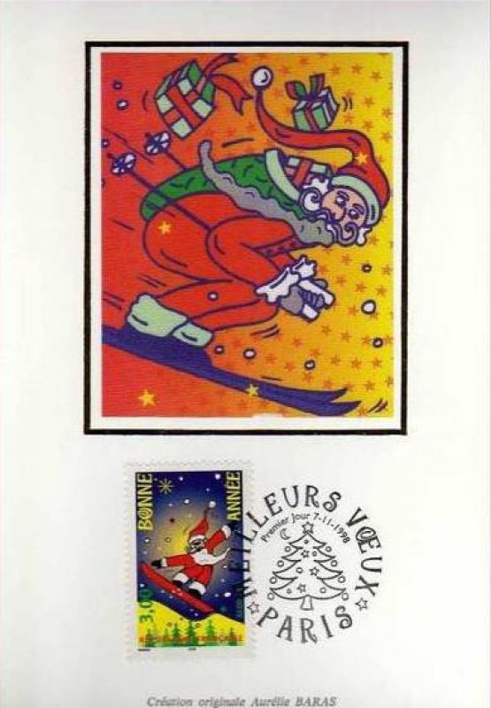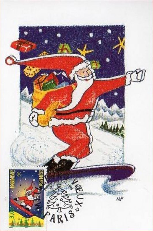 | Description | Meilleurs Vœux. Bonne année, Père Noël pratiquant le snowboard |