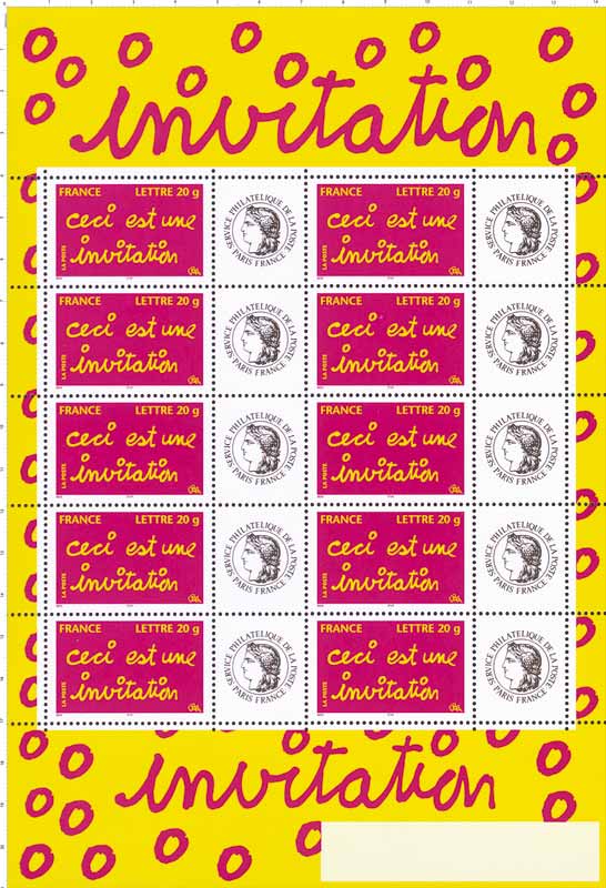 | Description | Timbre de message. Ceci est une invitation. Type du T.-P. de même date. Avec vignette Cérès |