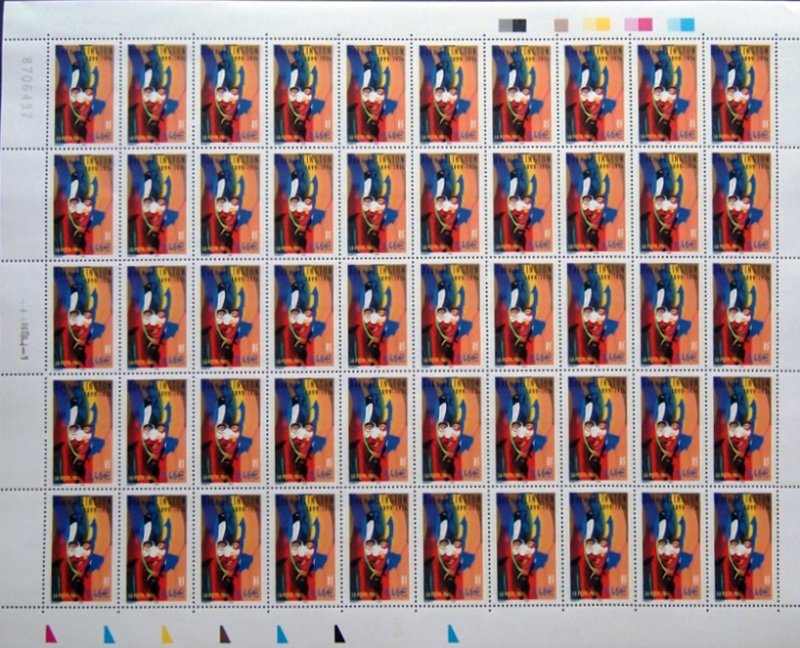 | Commentaire | Le même timbre issu du bloc n'est pas surchargé de bandes phosphorescentes. |