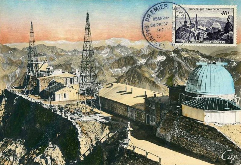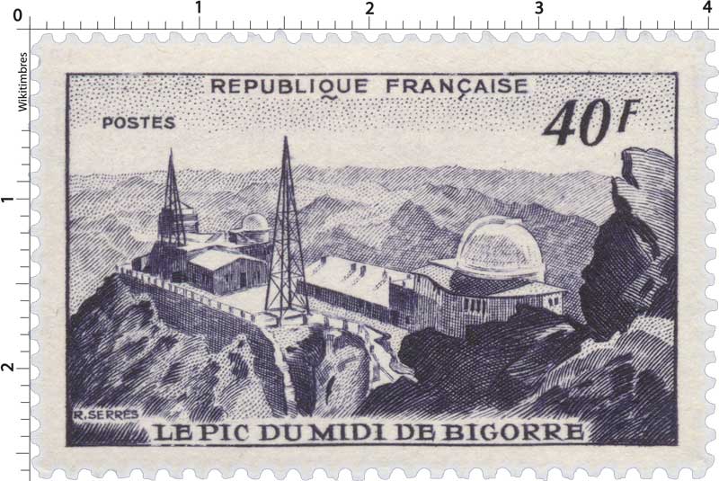 | Commentaire | Visuel : dans les Hautes-Pyrénées, le Pic du Midi de Bigorre (2 876 m) et son téléphérique (inauguré en 2001 et rénové en 2000), avec la plateforme de l'observatoire astronomique (inauguré en 1882), et le relais de télévision (1957, puis 1963). La première Réserve Internationale de Ciel Étoilé française à été labellisée en 2013, avec pour objectif de limiter le phénomène exponentiel qu'est la pollution lumineuse. Le site comprend 4 télescopes, 1 coronographe et 1 lunette solaire Jean Rösch. |