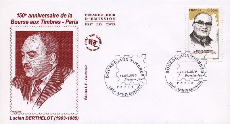 | Description | 150e Anniversaire de la bourse aux timbres Lucien Berthelot (1903-1985), industriel et philatéliste, né à Paris |
