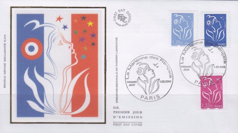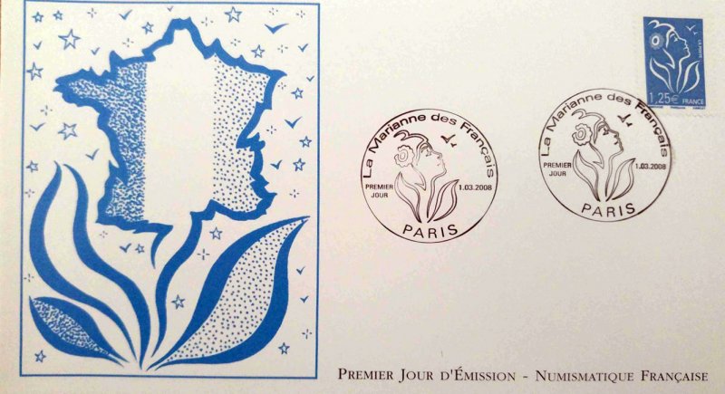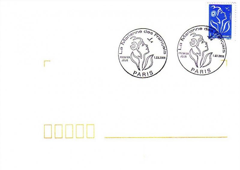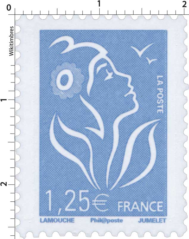 | Commentaire | Marianne des Français. Un cachet premier jour est disponible le 1er janvier lors de la manifestation de la Fête du timbre de Paris. Le cachet premier jour de Lamouche reprenant le même profil est celui utilisé lors de la première émission en janvier 2005. |