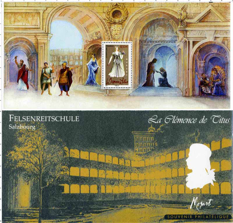 | Description | Personnages célèbres. Les opéras de Mozart. T.P. de même date imprimé sur feuillet de 205x95. La Clémence de Titus.(Costume de Graf 3921) |