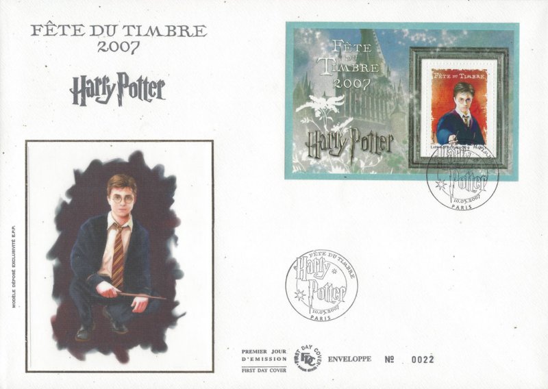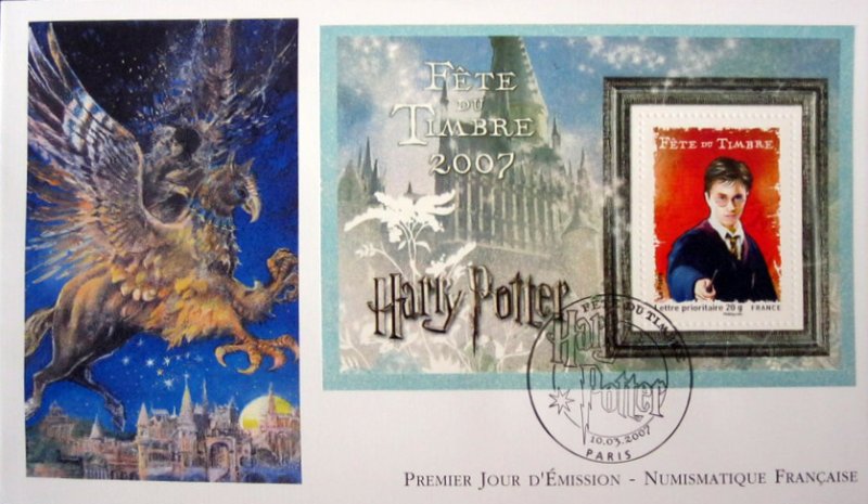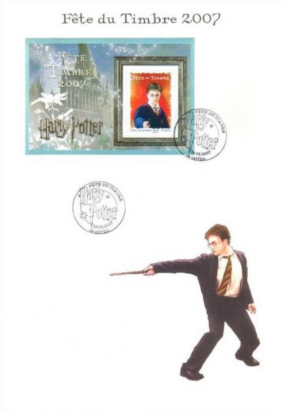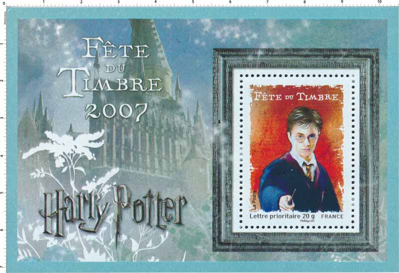 | Commentaire | FÊTE DU TIMBRE Dans le mini bloc est inséré le timbre Harry Potter et en fond l’école des sorciers « Poudlard » |