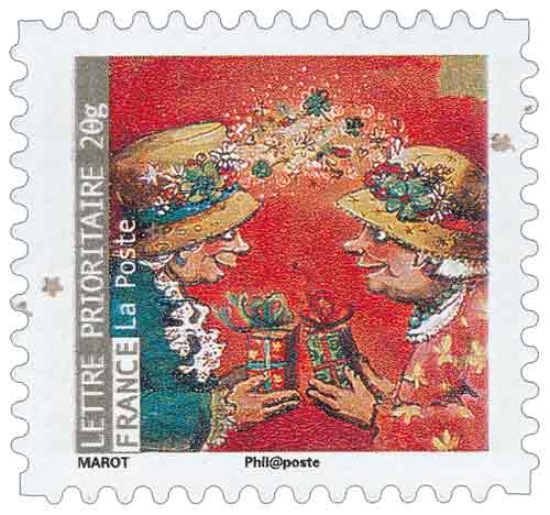| Commentaire | La mise en vente anticipée a lieu les 7 et 8 novembre au Salon philatélique d'automne, à Paris. Le timbre à date premier jour par Marot représente une femme soufflant sur un pissenlit, les aigrettes se dispersant autour des mots-messages « Amitié, amour, bonheur, santé ». Timbre sans millésime |