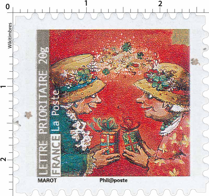 | Commentaire | La mise en vente anticipée a lieu les 7 et 8 novembre au Salon philatélique d'automne, à Paris. Le timbre à date premier jour par Marot représente une femme soufflant sur un pissenlit, les aigrettes se dispersant autour des mots-messages « Amitié, amour, bonheur, santé ». Timbre sans millésime |