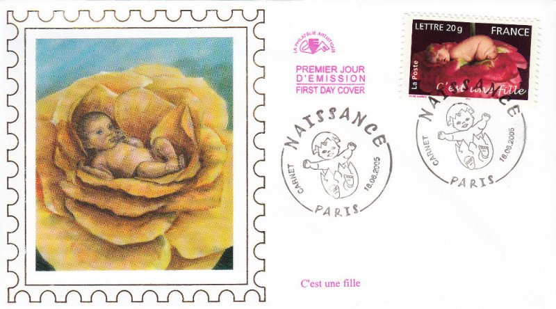 | Description | Timbres de naissances. C'est une fille. Sans valeur indiquée (validité permanente). Émis en carnets |