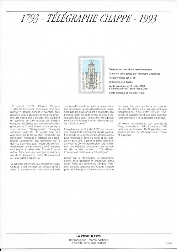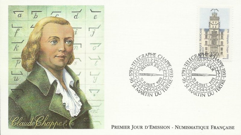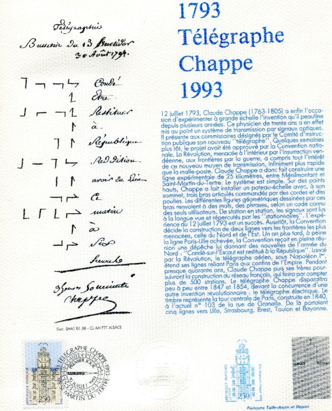 | Description | Bicentenaire de la mise en service du télégraphe optique Chappe. Claude Chappe (1763-1805), né à Brûlon (Sarthe) |