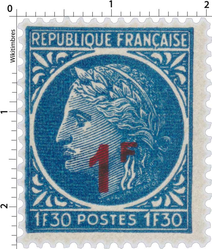 | Description | Timbre de 1945-47 (Cérès, n° 678) surchargé |