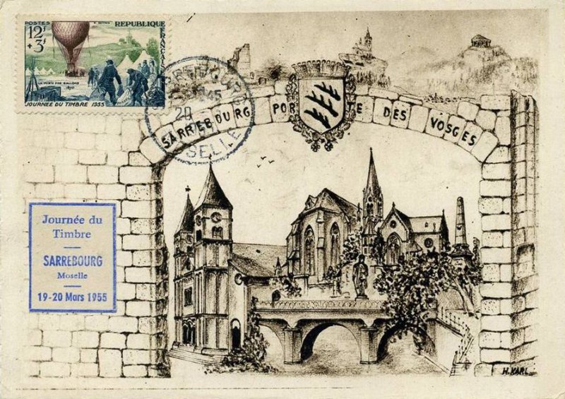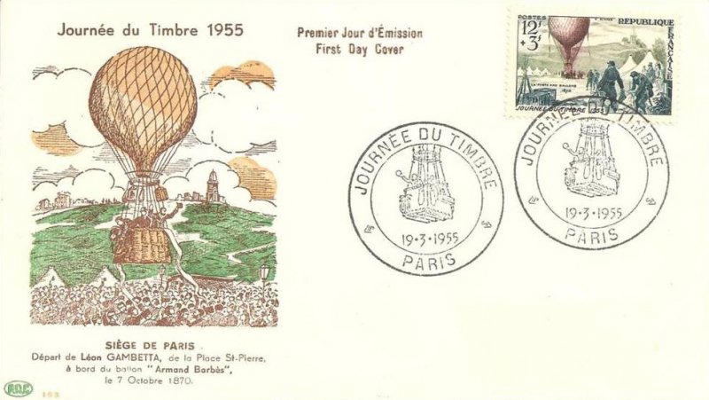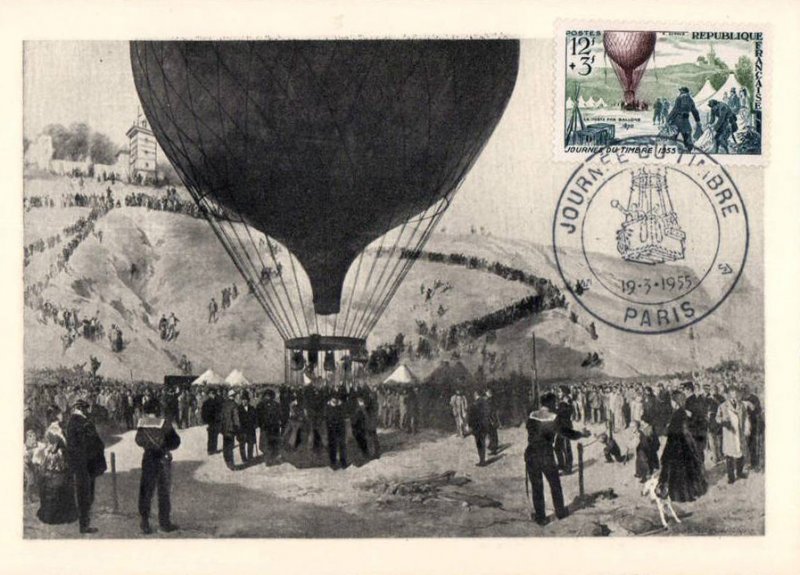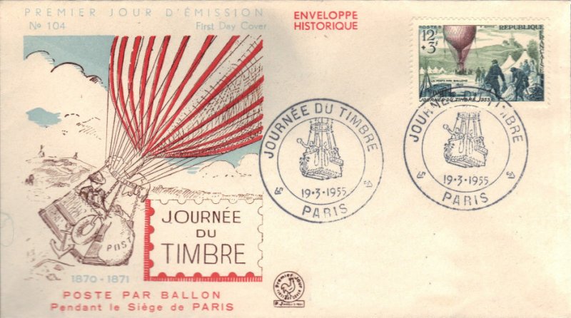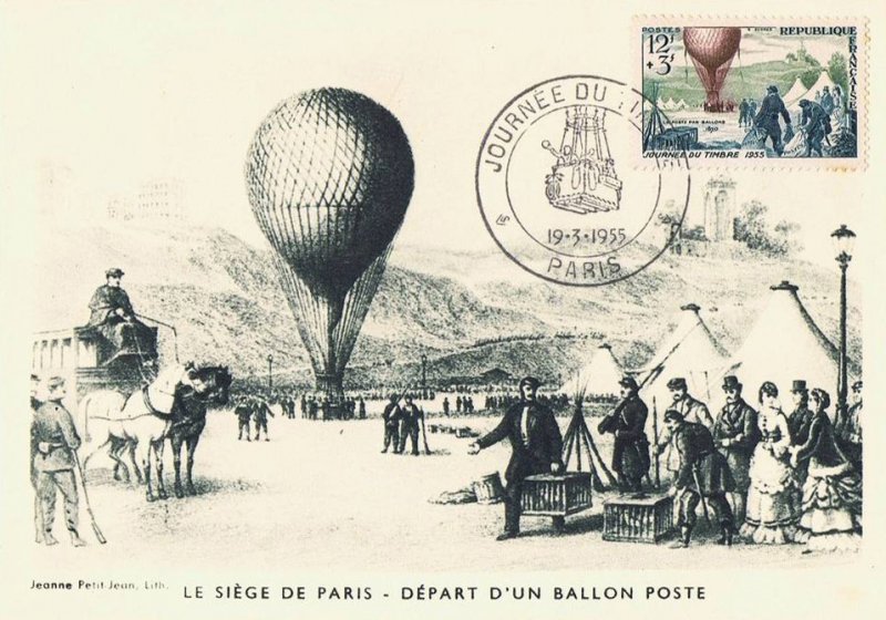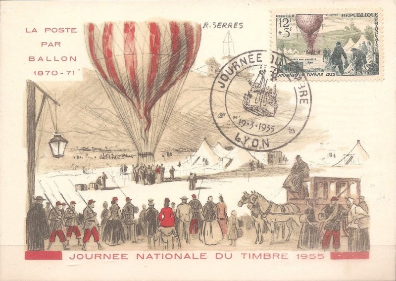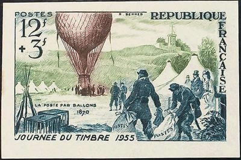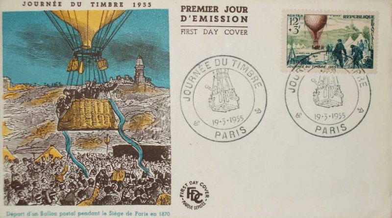 | Description | Journée du timbre 1955 et 85e anniversaire de la poste par ballons 1870 |