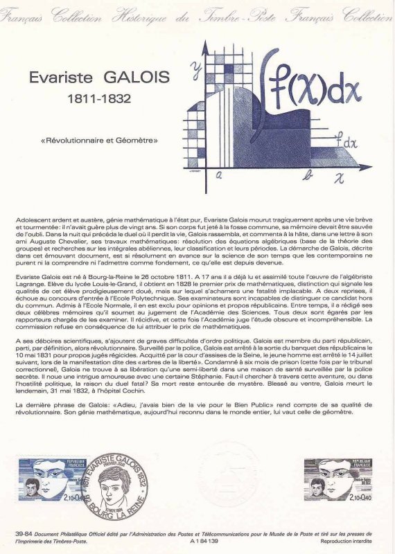 | Description | Évariste Galois (1811-1832), mathématicien, né à Bourg-la-Reine |