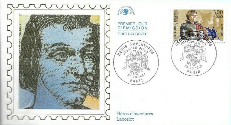 | Description | Lancelot, un des chevaliers de la Table Ronde de la légende arthurienne, thème développé par Chrétien de Troyes (1135-1190), trouvère et poète, né à Troyes |