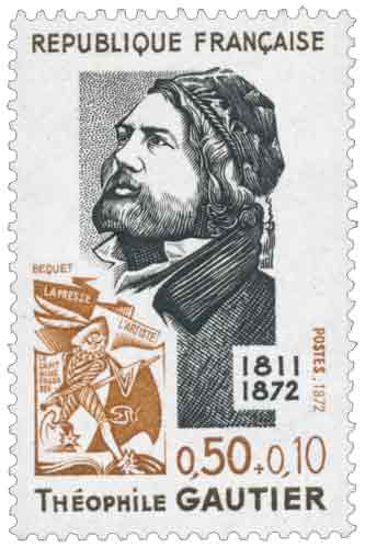 | Commentaire | Émis en France en 1972 à l’occasion du centenaire de la mort de Théophile Gautier, ce timbre-poste commémoratif s’inscrit dans la série des émissions consacrées aux grandes figures de la littérature française du XIXᵉ siècle. D’une valeur faciale de 0,50 franc assortie d’une surtaxe de 0,10 franc au profit de la Croix-Rouge française, il correspond à l’affranchissement de la lettre simple intérieure tout en associant l’hommage culturel à une action de solidarité nationale. Le contexte de l’émission rappelle la place singulière occupée par Théophile Gautier dans la vie intellectuelle de son temps, à la fois poète, romancier, critique d’art, dramaturge et journaliste, figure de transition entre le romantisme militant de la jeunesse et les courants esthétiques plus formels de la seconde moitié du siècle. Le timbre évoque cette trajectoire par un portrait sobre et réfléchi de l’écrivain, accompagné d’éléments symboliques rappelant ses multiples activités, notamment son rôle dans la presse et sa contribution au théâtre et au roman, dont Le Capitaine Fracasse demeure l’une des œuvres les plus populaires. L’émission renvoie également à l’engagement esthétique de Gautier, défenseur d’une conception exigeante de la création littéraire fondée sur la primauté de la forme et de la beauté, résumée par la formule devenue emblématique de « l’art pour l’art », qui influença durablement les poètes parnassiens et, plus largement, la modernité littéraire. Dessiné et gravé en taille-douce par Pierre Béquet, le timbre se distingue par la finesse du trait et l’équilibre de la composition, la technique de la taille-douce rotative permettant de restituer avec précision les traits du visage et les nuances d’ombre, dans une gamme chromatique volontairement restreinte de noirs, sépias et bruns. Cette émission s’insère ainsi dans un ensemble de timbres français dédiés aux écrivains et artistes, participant à la diffusion d’une mémoire littéraire nationale accessible à un large public par le biais du courrier quotidien. Une donnée marquante liée à ce timbre est qu’il rappelle le rôle central de Gautier lors de la bataille d’Hernani en 1830, épisode fondateur du romantisme théâtral, tout en soulignant son évolution ultérieure vers une esthétique plus classique et rigoureuse. Article rédigé pour WikiTimbres |