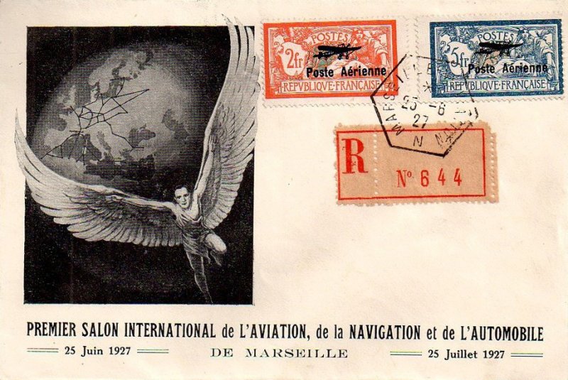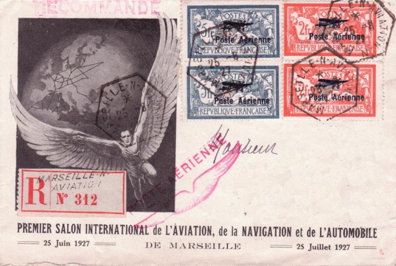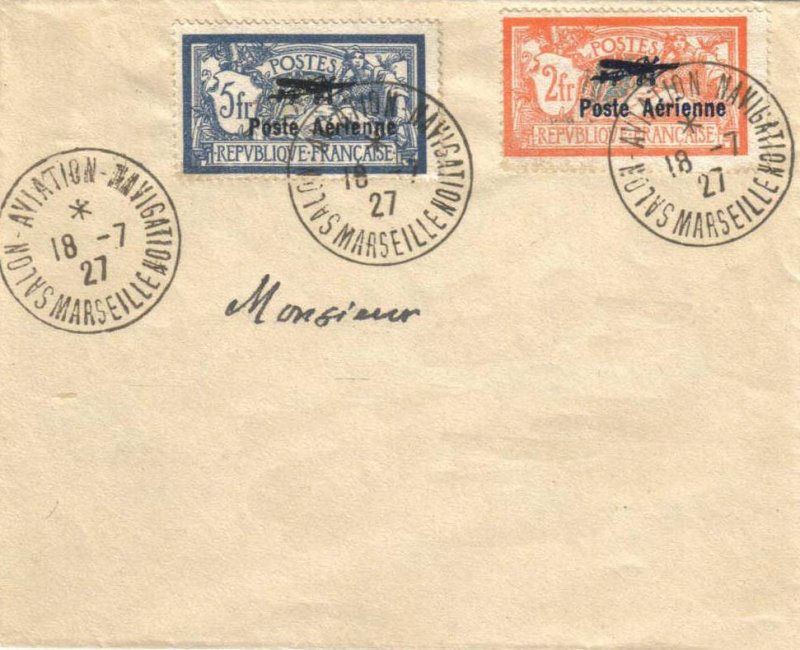 | Commentaire | Premier salon international de l'aviation, à Marseille. Type Merson.1ere apparition de la mention Poste Aérienne sur un timbre français |