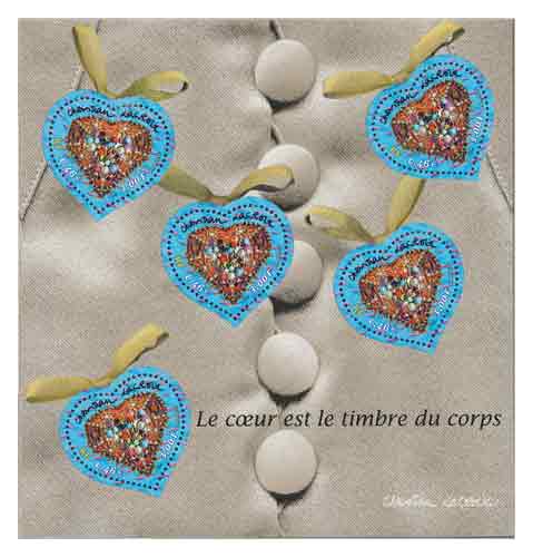 | Commentaire | Description synthétique du visuel du timbre : En juillet 1987, Christian Lacroix présente sa première collection de couture sous son nom, collection déjà placée sous le signe du cœur. Le cœur créé pour le timbre reflète l’univers de Christian Lacroix et symbolise l’ensemble de sa création, oscillant entre pureté des structures et ivresse des ornements. Timbre sans millésime |