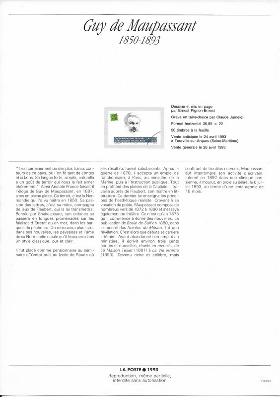 | Description | Guy de Maupassant (1850-1893), écrivain, né à Tourville-sur-Arques (Seine-Maritime) |