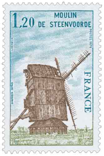 | Commentaire | Ce timbre s’inscrit dans la politique postale française de valorisation du patrimoine rural et technique, en mettant à l’honneur le moulin à vent de Steenvoorde, emblématique de la plaine flamande, territoire historiquement marqué par la présence de centaines de moulins. Située dans le département du Nord, à proximité de Dunkerque, la commune de Steenvoorde appartient à ce Houtland balayé par les vents, où les moulins à vent ont longtemps constitué un outil essentiel de la vie économique locale, notamment pour la mouture des céréales. Le monument représenté est le Noordmeulen, moulin à farine dont l’origine remonte au moins à 1576, comme l’ont révélé les recherches menées lors des campagnes de restauration. Arrêté au milieu du XXᵉ siècle après avoir subi de nombreux dommages, notamment dus à la foudre, ce moulin a été acquis par la commune en 1975 avec le soutien des pouvoirs publics, afin d’être restauré et sauvegardé. À la fin des années 1970, au moment de l’émission de ce timbre, le Noordmeulen symbolise un vaste mouvement de prise de conscience patrimoniale, visant à préserver les derniers moulins traditionnels encore visibles dans le paysage français. Le choix de ce sujet s’inscrit également dans une démarche touristique et culturelle, mettant en valeur l’identité flamande, ses paysages ouverts et son architecture vernaculaire. Par son dessin précis et sa gravure en taille-douce, ce timbre restitue la silhouette caractéristique du moulin, devenue un repère visuel fort et un témoignage du savoir-faire mécanique ancien, longtemps au service des communautés rurales. Article rédigé pour WikiTimbres |