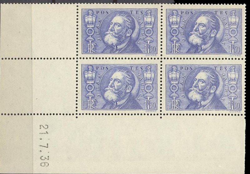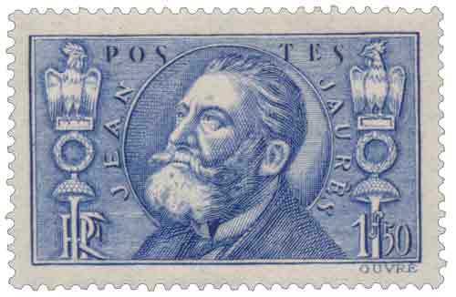 | Commentaire | Jean Jaurès (1859-1914). En savoir plus sur Wikipédia : Jean Jaurès L’émission du timbre Jean Jaurès à 1 franc 50, mise en vente le 30 juillet 1936, s’inscrit dans un contexte politique et symbolique particulièrement fort. Elle intervient vingt-deux ans après l’assassinat de Jean Jaurès, figure majeure du socialisme français, et quelques semaines après l’arrivée au pouvoir du Front populaire, donnant à cette émission une portée mémorielle et idéologique évidente. Le timbre est dessiné et gravé par Achille Ouvré, qui choisit une représentation sobre, frontale et hiératique du visage de Jaurès. Le portrait, traité en taille-douce, confère au personnage une gravité solennelle, éloignée de toute exaltation héroïque, mais fidèle à l’image de l’orateur, du penseur et du défenseur de la paix. Le choix de la couleur outremer, inhabituelle pour une valeur élevée commémorative, renforce la lisibilité du timbre tout en lui donnant une identité visuelle forte au sein des émissions de 1936. D’un point de vue postal, la valeur faciale de 1 f 50 correspond à un usage précis : l’affranchissement des lettres pour l’étranger, tarif en vigueur jusqu’au 11 juillet 1937. Cette adéquation entre valeur faciale et besoin réel explique un tirage conséquent de 8 millions d’exemplaires, tout en maintenant un intérêt philatélique marqué en raison de la thématique et de la qualité de gravure. Ce timbre appartient à la série des grandes figures républicaines honorées dans l’entre-deux-guerres, aux côtés notamment de Victor Schoelcher et Jean Moulin. Il participe à la construction d’un panthéon postal républicain, où la mémoire nationale se diffuse par l’objet quotidien qu’est le timbre-poste. Le retrait relativement rapide de la vente, en septembre 1937, limite cependant sa durée d’usage, renforçant aujourd’hui son attrait pour les collectionneurs spécialisés dans les émissions politiques et sociales.