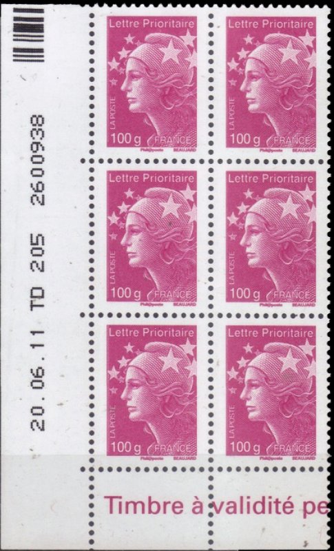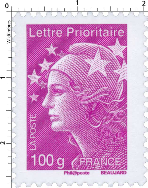 | Commentaire | Existe également en autoadhésif. Leur visuel évolue donc légèrement. Chaque timbre reçoit une mention “Ecopli”, “Lettre prioritaire”, “Monde” ou “Europe” en haut à gauche. Le poids autorisé s’inscrit en bas à gauche. La mention “France” bascule de gauche à droite. Les tarifs Ecopli 50 g et Europe 50 g disparaissent. La Marianne Ecopli 20 grammes abandonne sa couleur verte au profit d’un gris moyen. De plus, elle perd le fond de couleur du timbre pour faciliter sa reconnaissance par les machines de tri. Les Marianne de la monnaie (0,01 €, 0,05 €, 0,10 € et 1,00 €) sont inchangées et toujours disponibles. À partir du 1er juillet, ces nouvelles Marianne sont émises en planches, roulettes, carnets et planches autocollantes |