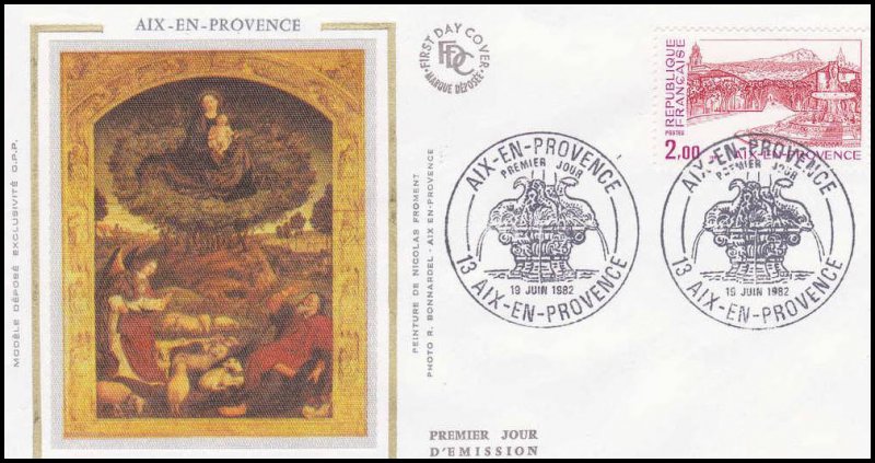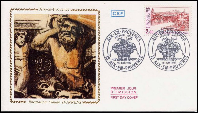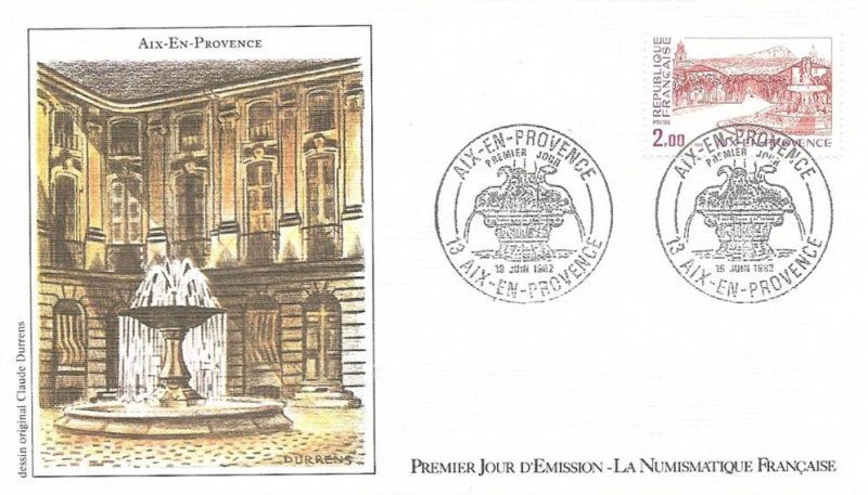 | Description | Aix-en-Provence (Bouches-du-Rhône) et représentation de la fontaine de la rotonde |