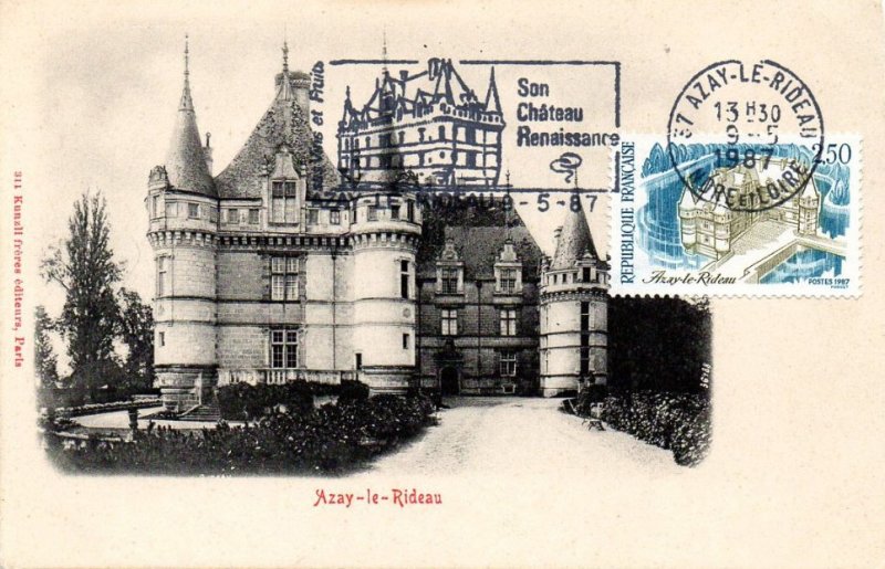 | Commentaire | Azay-le-Rideau : le premier château médiéval d'Azay est construit aux alentours de 1119 par l'un des premiers seigneurs du lieu, Ridel (ou Rideau) d'Azay, chevalier du roi Philippe II, dit "Philippe Auguste" (règne sept. 1180 à juil.1223), qui édifie une forteresse défensive censée protéger la route entre Tours à Chinon. Il est brûlé en 1418, par Charles VII, dit "Charles le Victorieux" (règne, oct.1422 à juil.1461), lorsque le roi, de séjour à Azay, est provoqué par les troupes bourguignonnes qui occupent la place forte. |