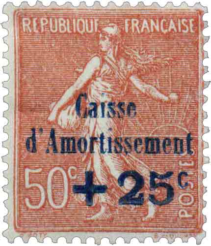 | Description | Au profit de la Caisse d'Amortissement. Type Semeuse lignée surchargée |